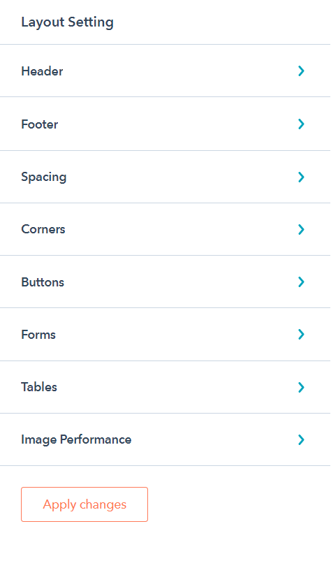 We have provided several settings for header, footer, spacing, corners, buttons, forms, tablets, and image performance.