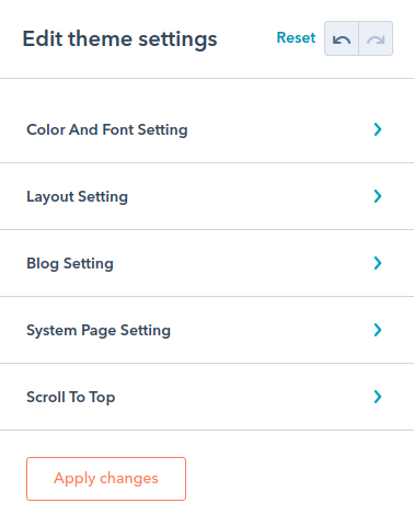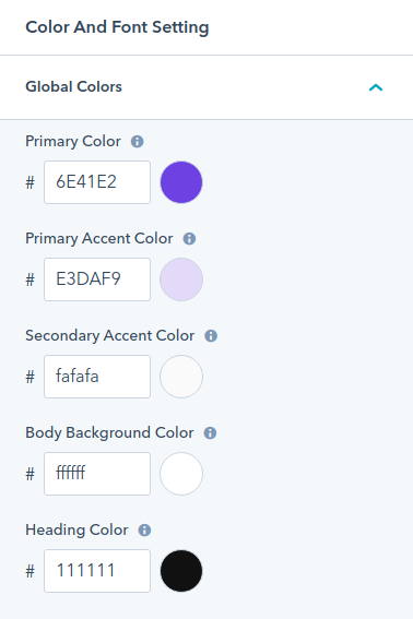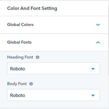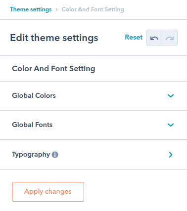 In color and font settings you can change the brand colors, global fonts, and typography.
