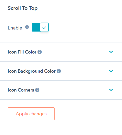 Enable or disable the Scroll To Top option in your theme. You can opt color for your icon filling, icon background color. There is a scale between zero to hundred for choosing icon corners radius.